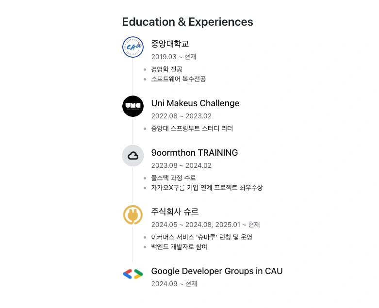Timeline ์ปดํฌ๋ํธ์ ๋๋ค. ๋ธ๋ก๊ทธ์ About me ํ์ด์ง์ ๋ฃ์ผ๋ฉด ์ฐฐ๋ก์ผ ๊ฒ ๊ฐ๋ค๋ ์๊ฐ์ ํ์ต๋๋ค. ์ฌ์ฉํ๊ธฐ ์ด๋ ต์ง๋ ์์์ง๋ง ์ข์ธก ๋๊ทธ๋ผ๋ฏธ์ ํฌ๊ธฐ ๋ณ๊ฒฝ ๊ธฐ๋ฅ์ ์ ํ์ด ์์๊ณ , ์์๋ก ์กฐ์ ํ๋ฉด line์ด ์ด๊ธ๋๋ ๋ฌธ์ ๊ฐ ๋ฐ์ํ์์ต๋๋ค.
